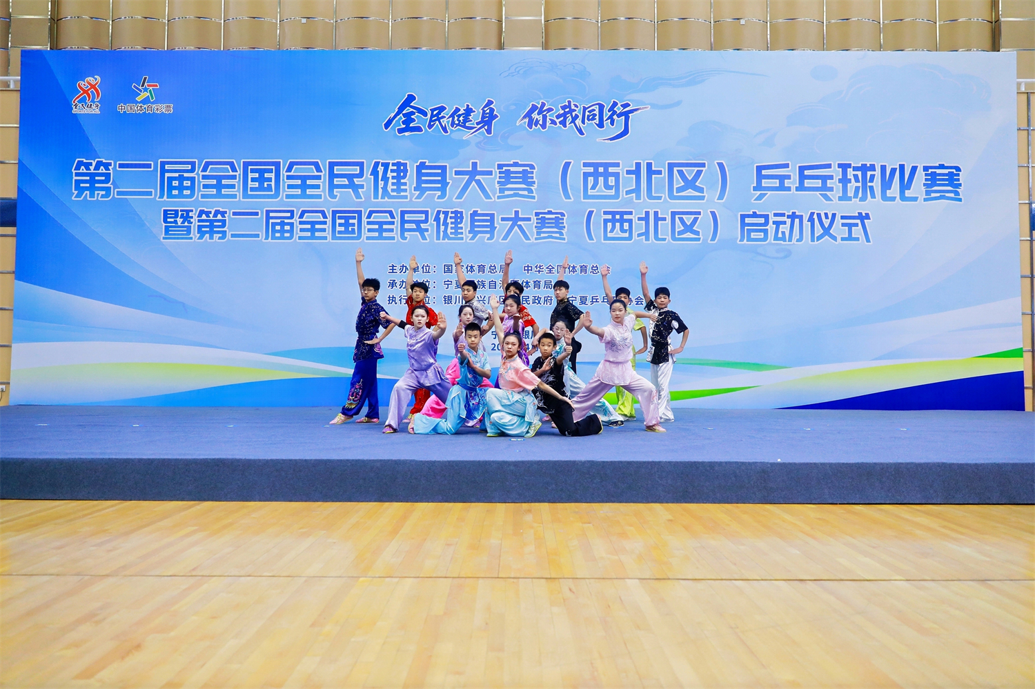 本次赛事以“全民健身 你我同行”为主题,设男子甲组团体、女子甲组团体、男子乙组团体、女子乙组团体四个竞赛项目,比赛邀请陕西、甘肃、青海、新疆、新疆生产建设兵团及宁夏等西北五省(区)代表队报名参赛。运动员们精神饱满、顽强拼搏,挥拍竞技、切磋交流,充分展现了全民健身理念,彰显了西北群众体育的蓬勃活力与良好精神风貌,获得本次赛事冠军的省(区)代表队,将晋级参加全国总决赛。启动仪式上,活力啦啦操、宁夏非遗花儿联唱、传统武术、少儿篮球操等精彩节目轮番上演,将西北地域文化、全民健身理念与国球魅力有机融合。