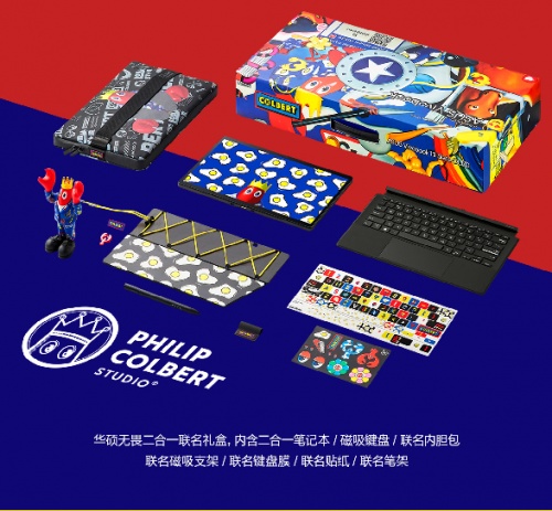 这次无畏二合一OLED触屏笔记本还联动了世界级潮流艺术IP龙虾人推出联名产品——华硕无畏二合一Philip Colbert艺术家联名款。由Philip Colbert亲自设计多款惊喜好物,无论是龙虾人的封面支架还是手办级品质的龙虾人触屏笔架,全都极富创造力,萌化人心。Philip Colbert所创作的龙虾人是他的艺术语言,甚至是他在一个超现实世界中的自己,以潮流艺术的方式表达对现实生活的思考,通过本次IP联动,华硕拓宽了品牌与用户的沟通方式,表达了华硕无畏系列产品不断创新,与年轻人无畏同行的理念。无畏二合一艺术家联名款不仅仅是为用户日常生活的数码工具,方便人们的学习与生活,更是青春张扬,表达自我个性、态度的“时尚单品”。