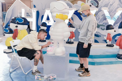 BENCH空间主理人、涂鸦艺术家SEMIK也来到了艺术展现场,在HARRY模型上,进行了一场充满趣味与想象的涂鸦创作。