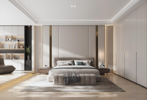现代新中式风格的空间组织不再是以房间的组合为主,也不再局限于硬质的墙体,而是更加注重会客、学习和睡眠等功能性,并且通过家具、吊顶和地面材料、陈列品来表现不同功能的空间和划分,同时这种划分又随着不同的时间段表现出不同的灵活性、兼容性和流动性。