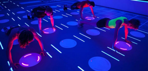 除了一般的运动项目,这里还有沉浸式锻炼项目。通过投影技术模拟游戏里的场景,再加入互动系统让体验者根据游戏提示做出指定运动动作,顺利完成所有任务后,就可以获得积分奖励并继续闯关锻炼。这种方式将运动与娱乐结合起来,不仅帮助体验者达到锻炼的目标,还可以大大增强运动的趣味性,增加体验感。